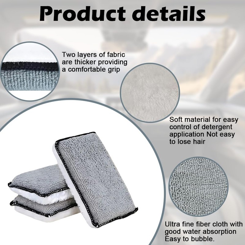 4 PCS Car Double-Sided Velvet Scrubber Pads, Detailing Sponge for Car Washing & Cleaning