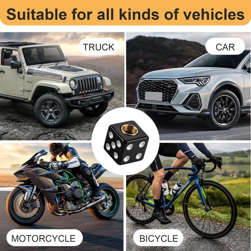 - Dust and Leak-Proof: Dice tire cap can effectively prevent dust, water and sand from entering the tire valve, ensuring a safe driving experience