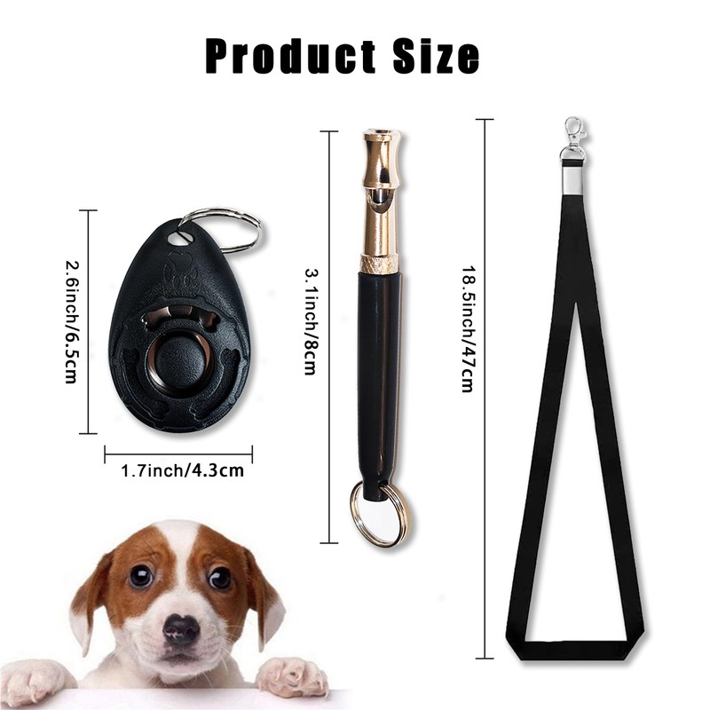 - đ€ăPacking IncludedăYou will receive 2 pcs of dog training whistle, 2 pcs of training clickers, 2 pieces of black lanyard, a complete set for you to meet your different daily use.
