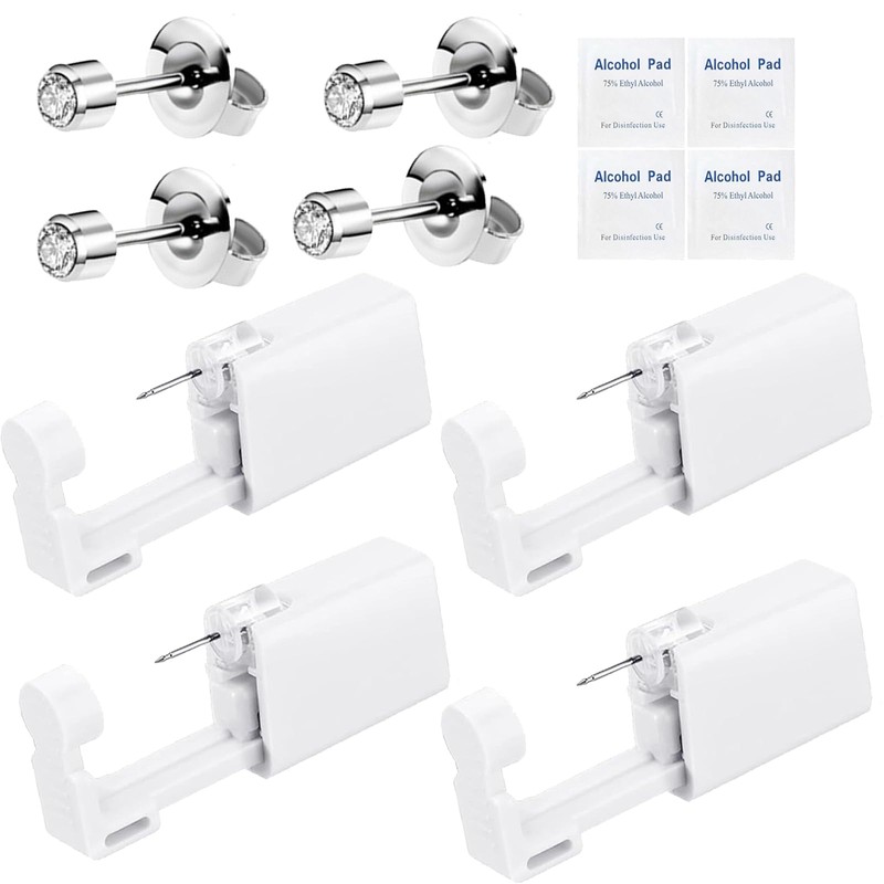 - 1.Earring Piercing Kit - 4 Pieces Ear Piercing Guns, 4 Pieces Ear Studs And 4 Pieces Clean Pads. Each Unit Combines A Ear Piercing Gun With A Built-In Ear Stud. The Piercing Kit Are Made Of High Quality Materials And Be Packaged Individually. Suitable For You And Your Family To Use.
