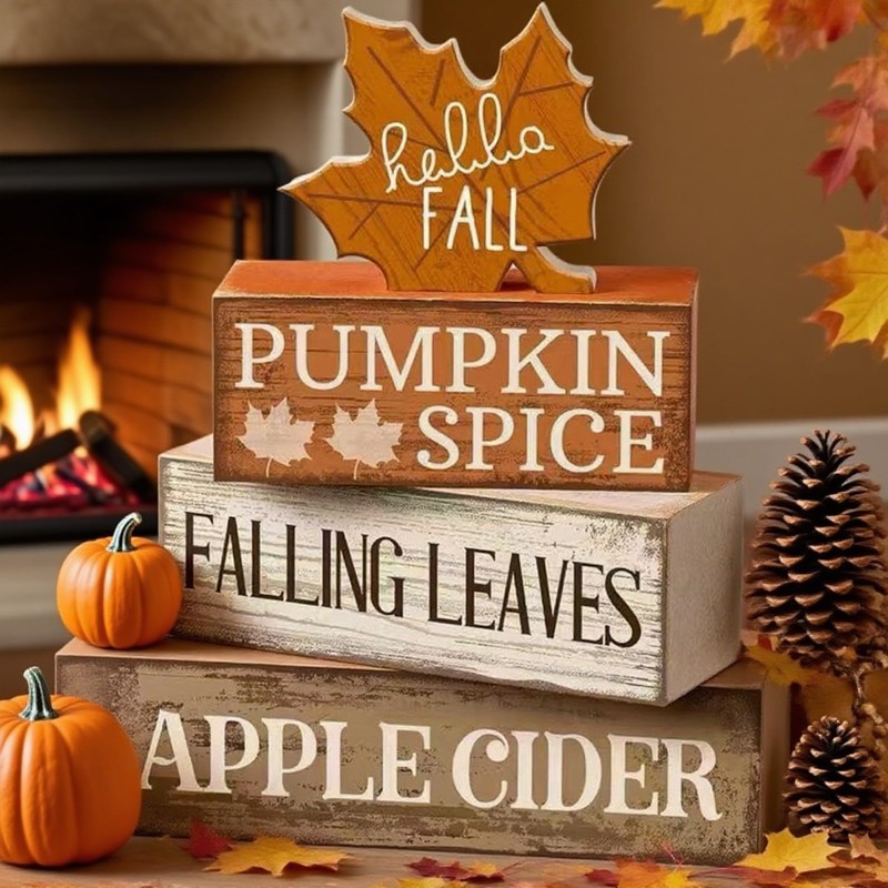 - Fall Tiered Tray Decor Set Including 4 Wooden Signs: 1 maple leaf sign and 3 wood decoration, decorate your home with this vibrant set of autumn decorations to create a cozy seasonal atmosphere