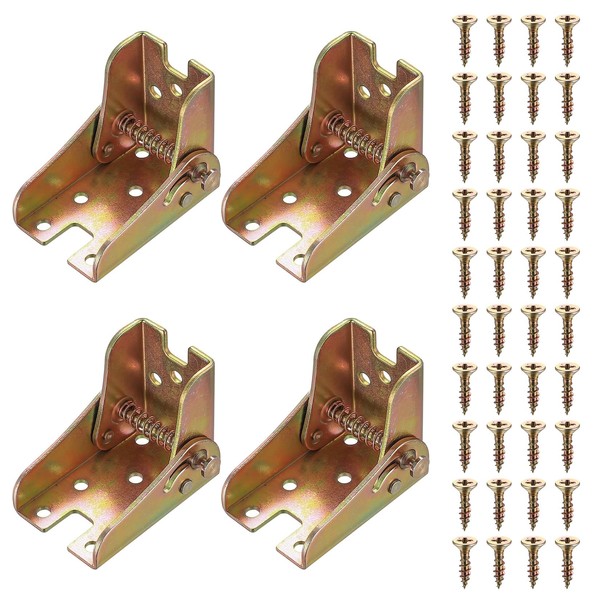 4 Pcs Folding Table Legs, 90 Degree Self Locking Foldable Hinges, Folding Locking Hinges, Folding Table Hinges, Lock Extension Hinges for Table Bed Leg Feet Work Bench Support Brackets (Brass Color)