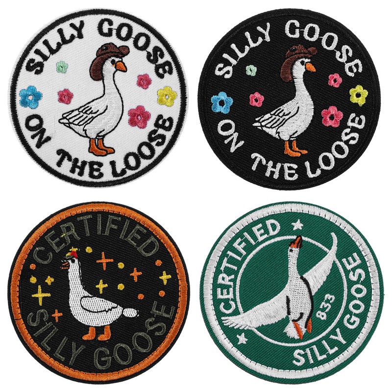 4 Pcs Funny Goose Loop and Hook Patch Certified Silly Goose Embroidered Meme ...