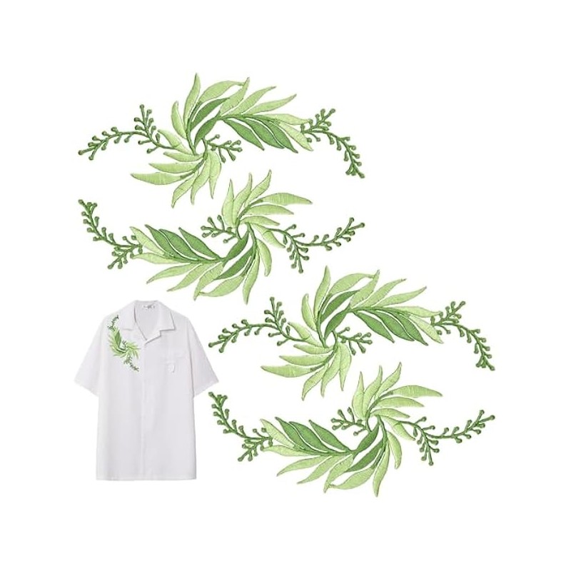 4 PCS Green Leaves Vine Applique, Iron on Applique Embroidery Lace Decorative Applique Patches, Bohemian Shoulder Collar Embellishment Costume Crafts Trims Sewing Patches for Craft Projects