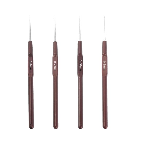 4 PCS Häkelnadel Set,Kleine Größe Häkeln Set,Häkelnadel Spitzer Kopf Häkelnadel Set Ergonomische Häkelnadel Set(0,5 mm bis 0,8 mm) leichte und rostfreie Häkelnadeln, ideal für Anfänger und Profis