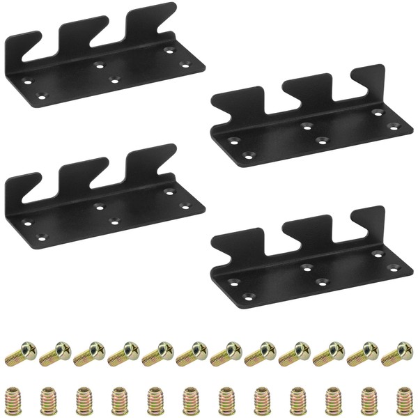4 PCS Heavy-Duty Bed Rail Support Brackets,Three-Hook Bed Frame Fasteners (Black)