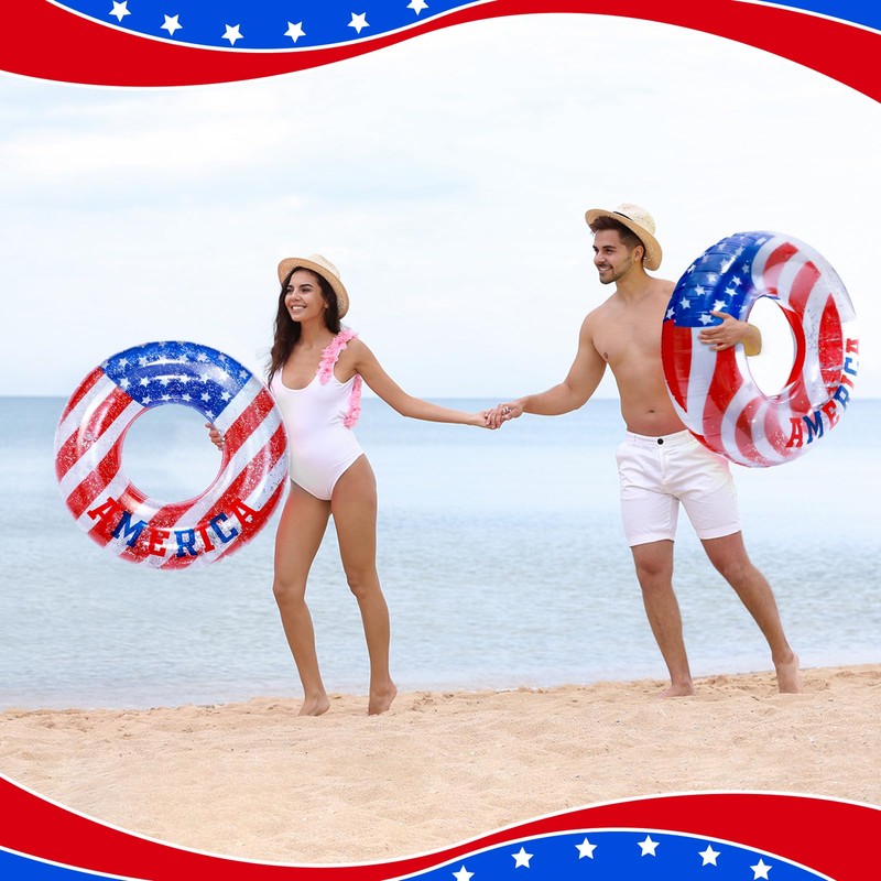- Wide applications: Whether you’re planning a 4th of July summer pool party, a Independence Day beach party, summer theme parties, birthdays, weddings or bridal showers, these pool tube rings are great for any event. From patriotic inflatable pool toys to adult pool floats, they offer hours of entertainment in pools, lakes, ocean or rivers, making them the ideal swim toys for everyone.
