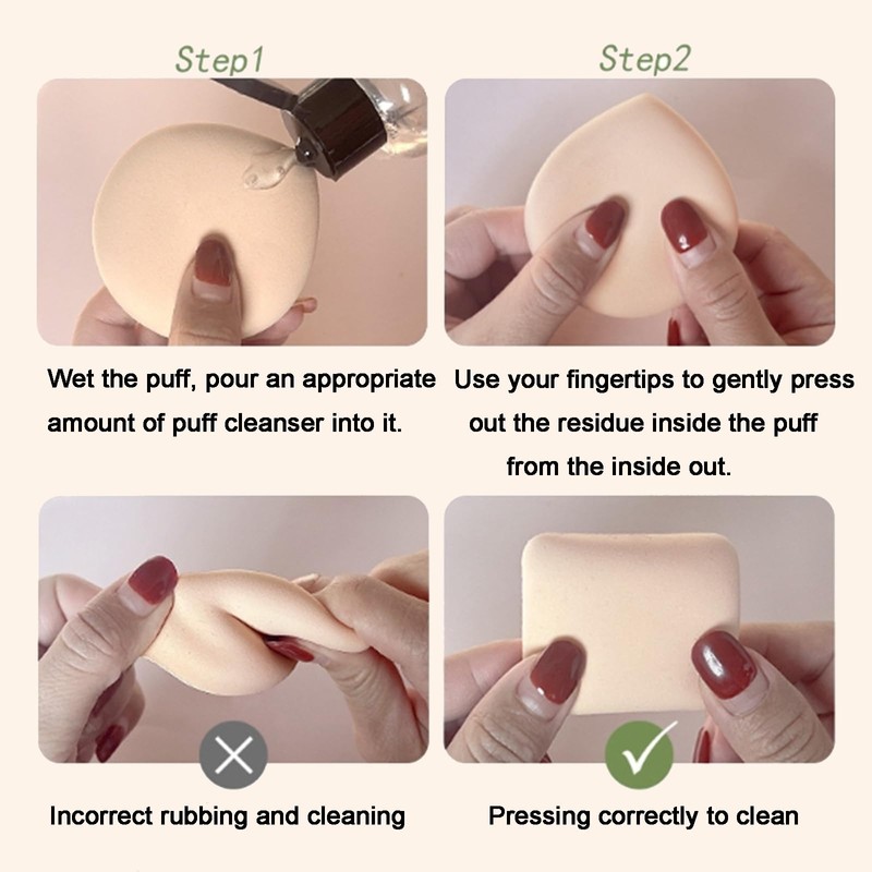 1. Wet the puff and pour in an appropriate amount of puff cleaner.