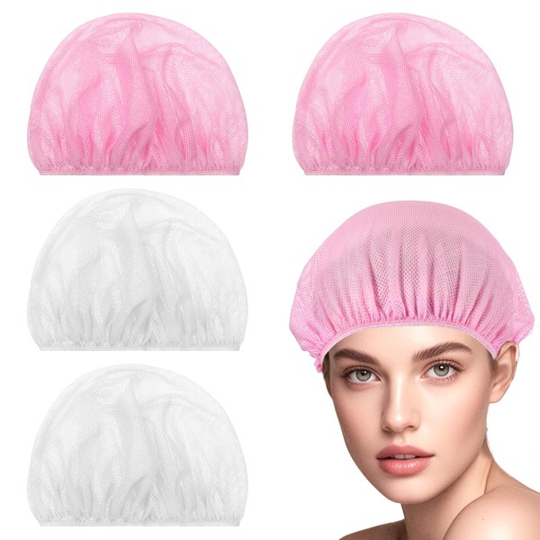 4 PCS Mesh Sleep Bonnet for Sleeping Night Net Plopping Cap for Drying Curly Hair Diffuser Cap for Curly Hair Nets Sleep Caps Shower Caps for Women (White, Pink)