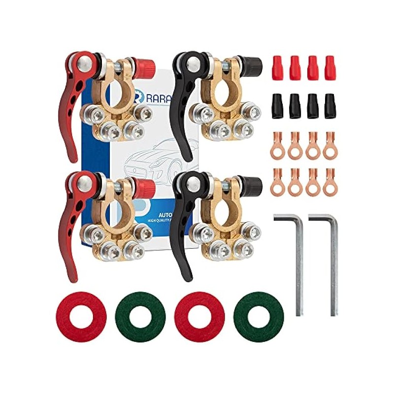 4 PCS Military Spec Battery Terminal Connectors Top Post Kit with Cover,Copper Lugs,Heatshrink and Post Washer