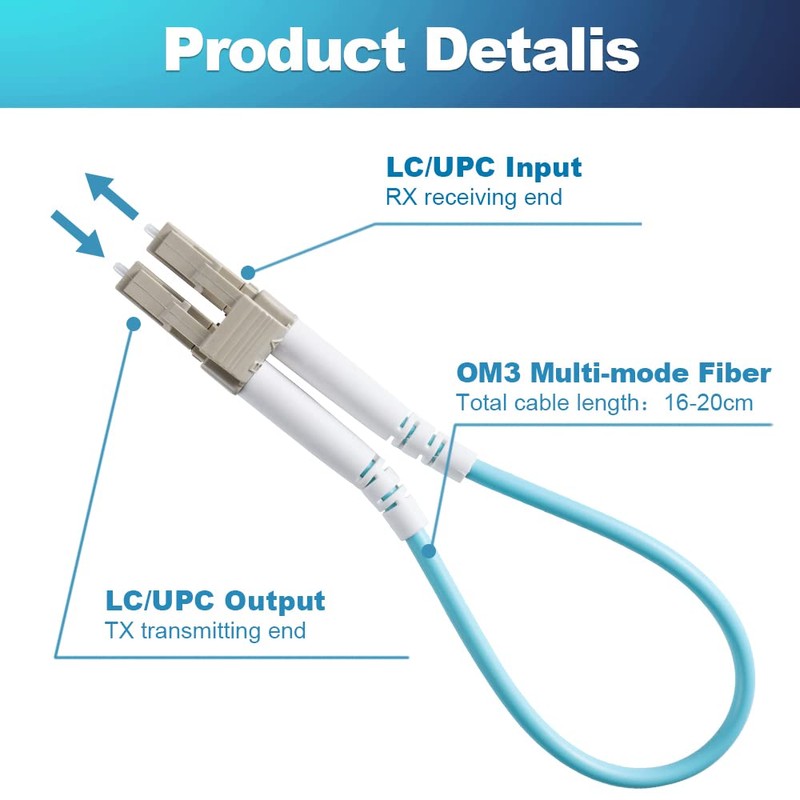 - 【Main Parameters】 Loopback tester are with LC-UPC connector plug and Multi-mode OM3 fiber; supports -20~70℃ operating temperature