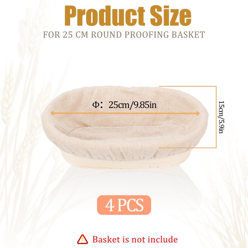 4 Pcs Oval Banneton Cloth Liner for Bread Natural Rattan Baking Dough Banneton Proofing Sourdough Basket Cloth Liner for Bakery Home Baking, 10 × 6 inch