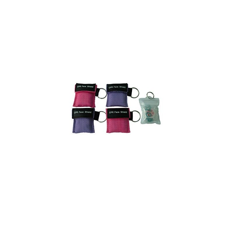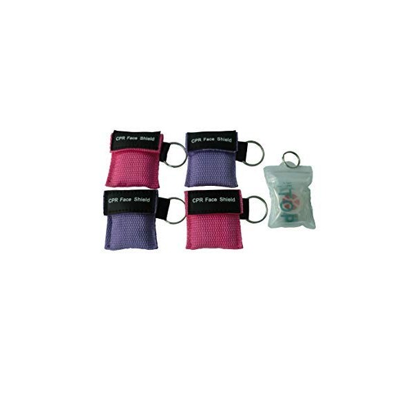 Elysaid 4 Pcs/Pack CPR Barrier with Keychain CPR Face Shield with 1-Way Valve First Aid Kit Purple and Pink