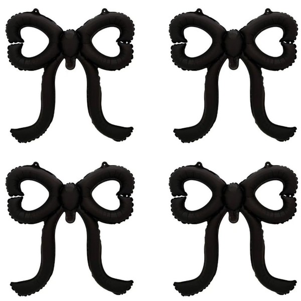 4 Pcs Pink Bow Balloons, 31”Huge Bow Aluminum Foil Balloons for Birthday, Baby Shower, Wedding, Bridal, Engagement, Bachelorette, Princess, Coquette Party Decorations Supplies (Black)