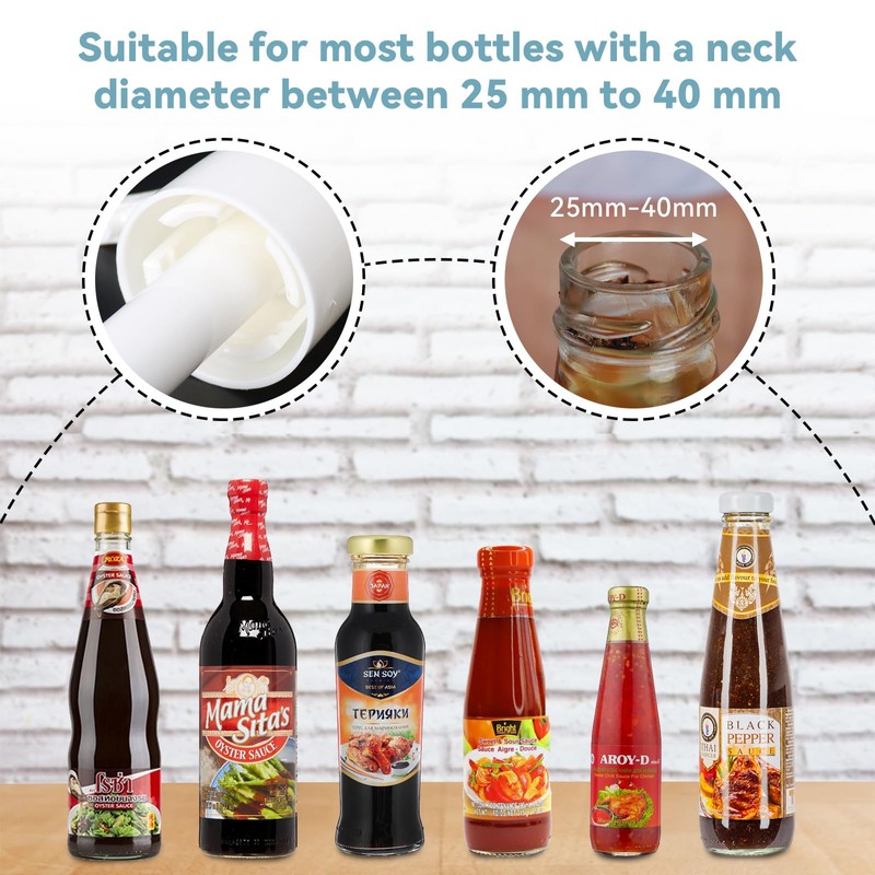 - [Safe and Reliable]The oyster sauce pressure nozzle and straw are made from food-grade PP material, ensuring there are no harmful substances to the human body. This guarantees safety and durability, giving you peace of mind when it comes into direct contact with food.