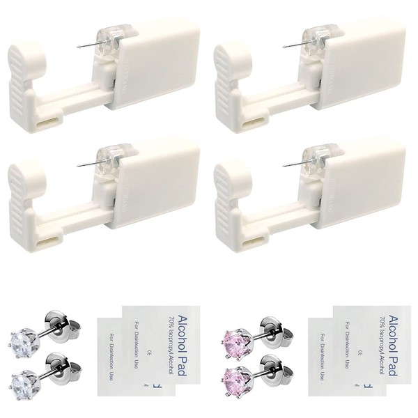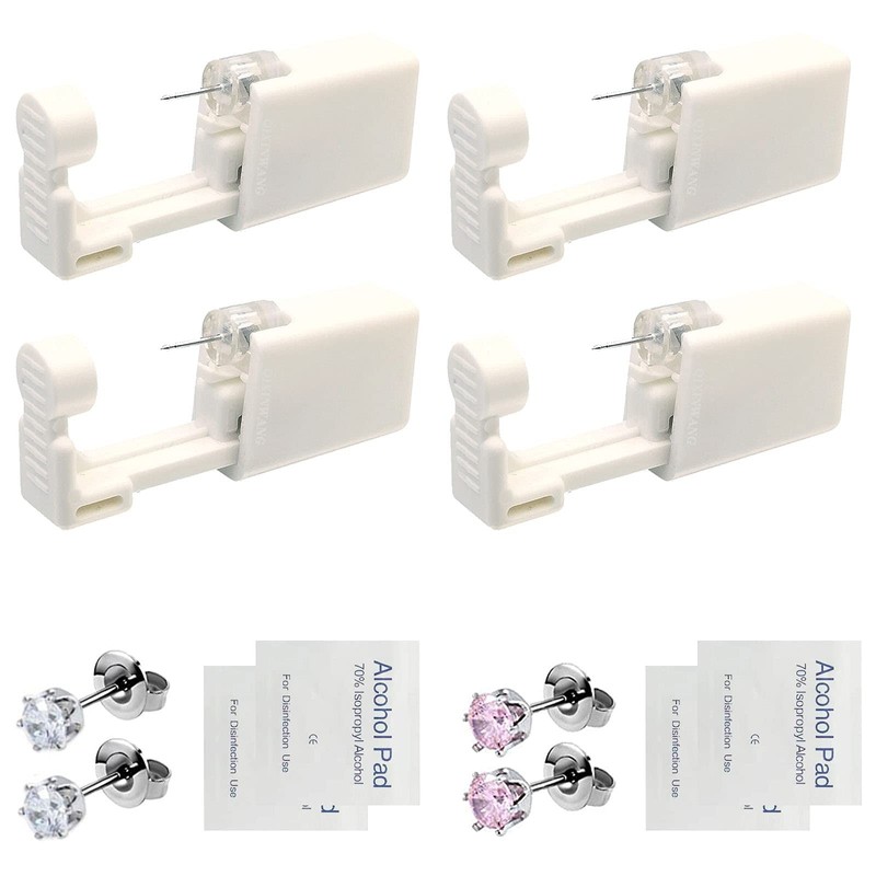 - 💎 Each unit combines 4 ear piercing gun with 2 silver ear studs White crystal+ 2 silver ear studsPink crystal 4 cleaning tablets, Perfect combination to meet your decoration needs in daily life