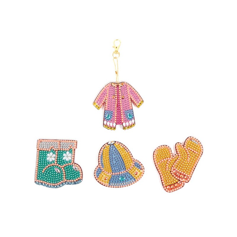 4 Pcs/Set 5D Full Drill Rhinestone Mosaic Making Kit Diamond Painting Keychain for DIY Craft Key Ring Bag Decor (Clothes)