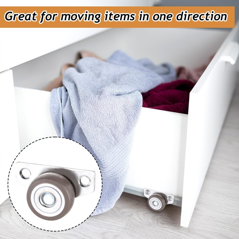 • Versatile Applications: These 1.25" small caster wheels are perfect for light-duty furniture and items that move in a single direction. They are great for under-bed storage bins, sliding gates, trays, drawers, kitchen trolleys, and DIY projects