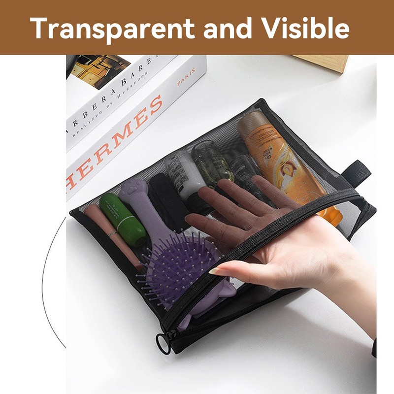 - HIGH QUALITY MATERIAL: Made of high quality thick transparent mesh material to ensure durability and unbreakable. The zipper is smooth and easy to open and close, protects your cosmetics from spills and is easy to clean, keeping the interior tidy.