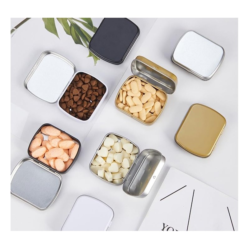 4 Pcs Small Storage Box Metal Rectangle Empty Hinged Tins with Lid Organizers Containers for Earring Crafting Jewely Home Hooks Small Items (Silvery, 4.7 * 1.5 * 6CM)