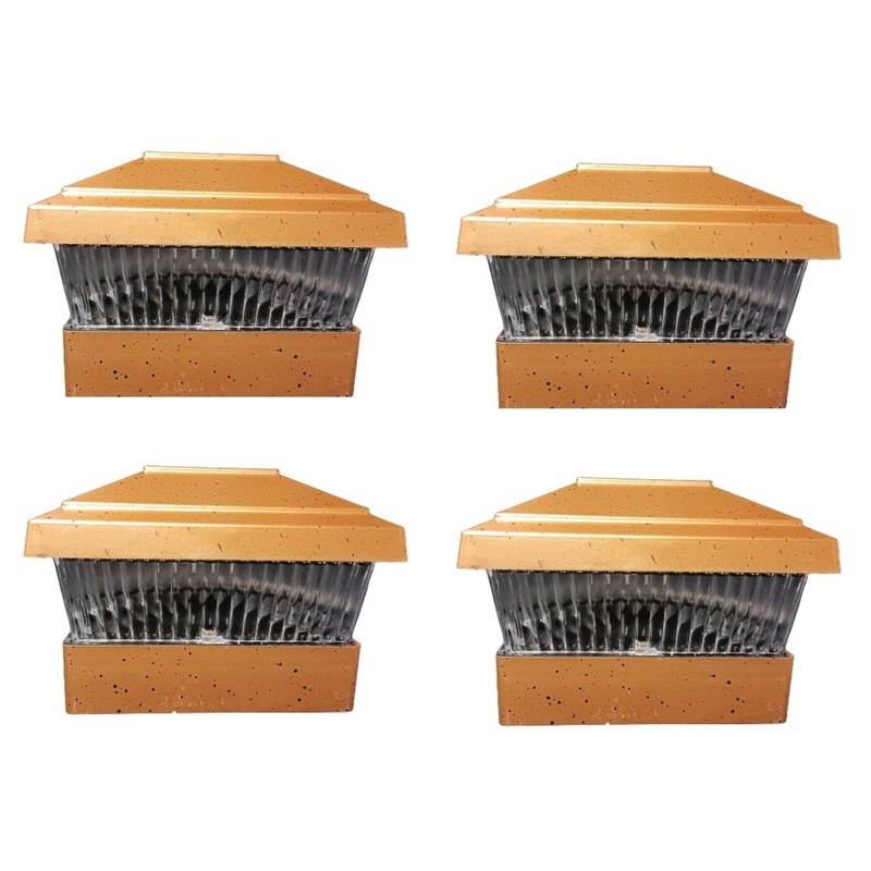 4 Pcs Solar Copper Color Square Plastic Post Fence Cap Lights 5x5 Inches with 1 Ultra Bright LED