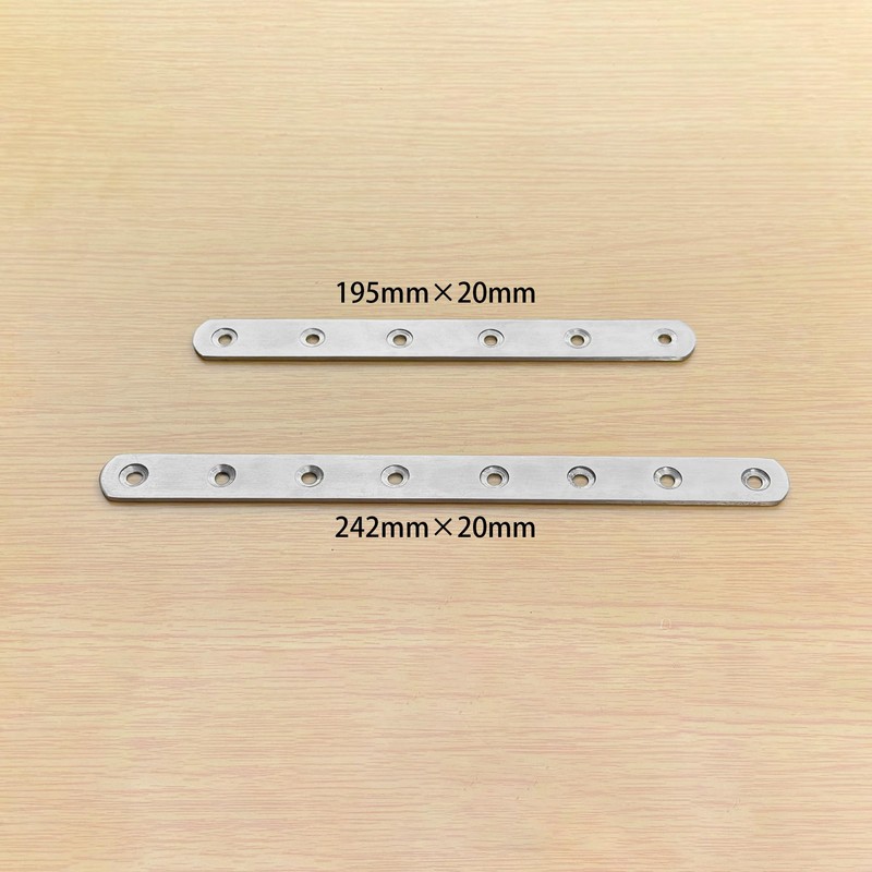 - This pack includes 4 stainless steel flat brackets (195mm x 20mm x 2.6mm) along with matching self-tapping screws—everything you need for easy and secure installation.