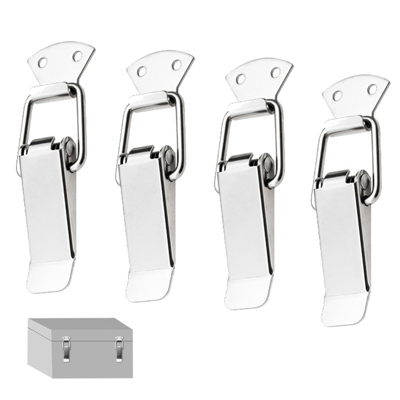 4 PCS Stainless Steel Tension Clasp Small Spring Loaded Toggle Latch Multifunctional Spring Hasp Lock for Boxes Tool Boxes Chests Drawers Cupboards