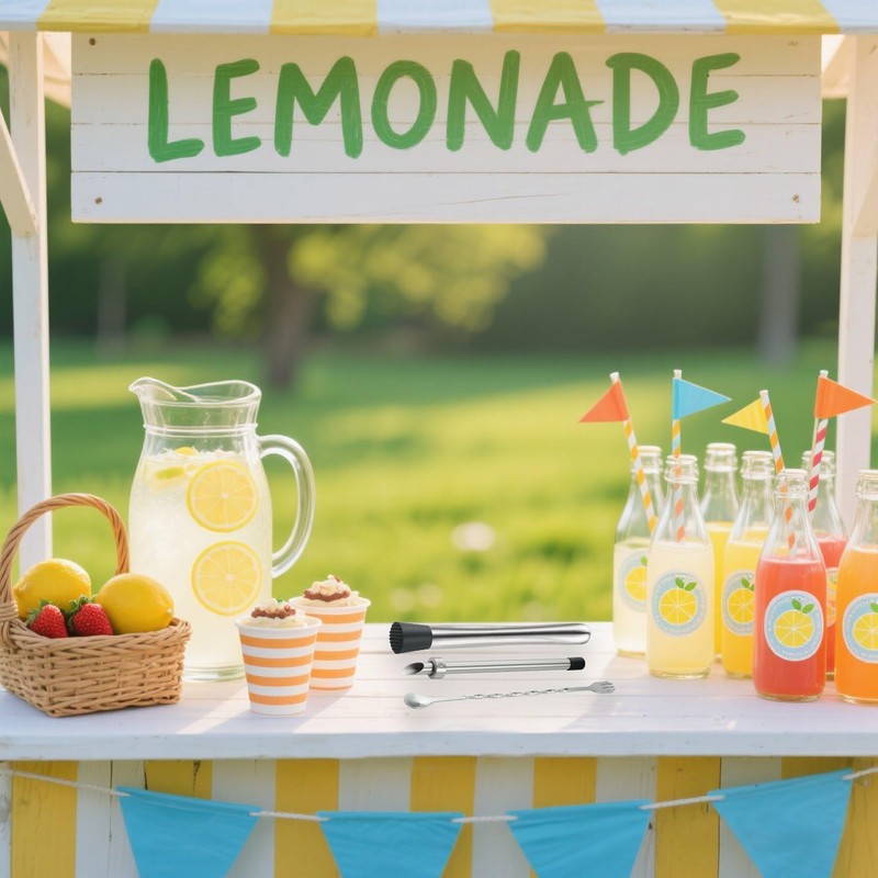 • Lemonade Stand Tool Set - package includes 1 straw puncher, 1 stainless steel muddler, 1 long handle mixing spoon and 1 cleaning brush, ideal for setting up your very own refreshing lemonade stand.