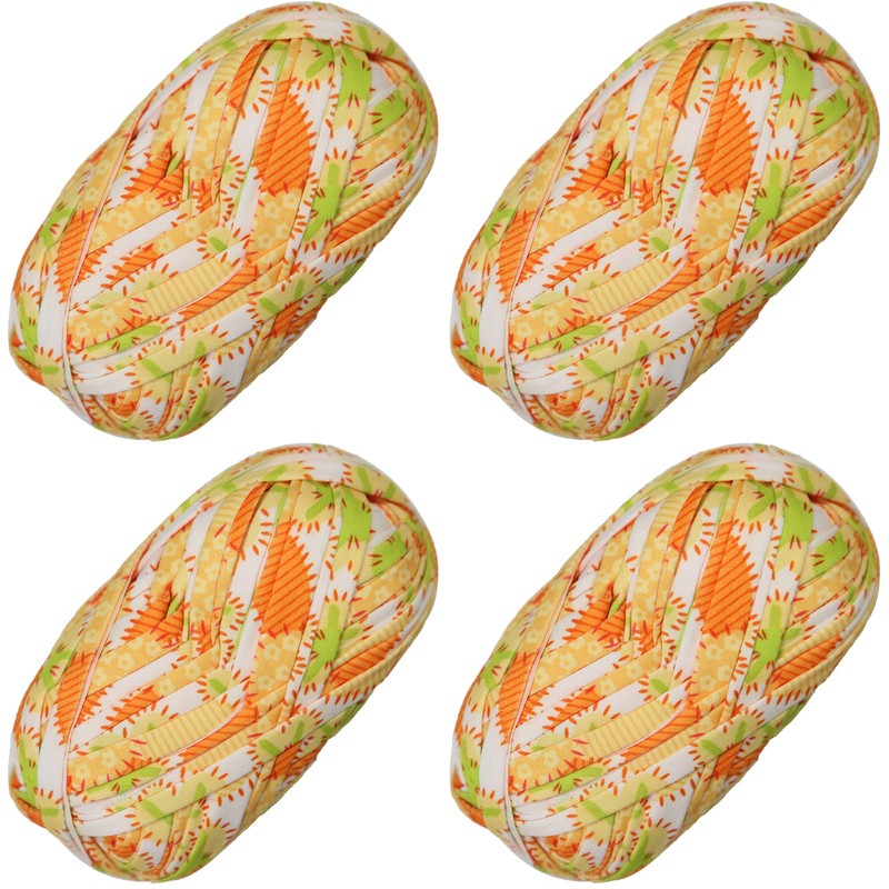 4 PCS T-Shirt Yarn Elastic Fabric Crochet Cloth Yarn for DIY Knitting, Spaghetti Thick Knitting for Hand DIY Bag Blanket Cushion Crocheting Projects,Home Decor(Orange Flower)