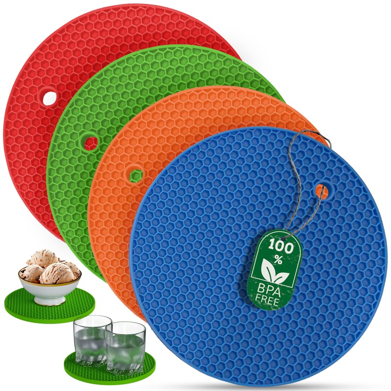 The longest-lasting and most versatile cooking accessory you will need. Perfect as silicone mats, hot pot holders, drying mats, jar openers, spoon holders, garlic peelers, and coasters.