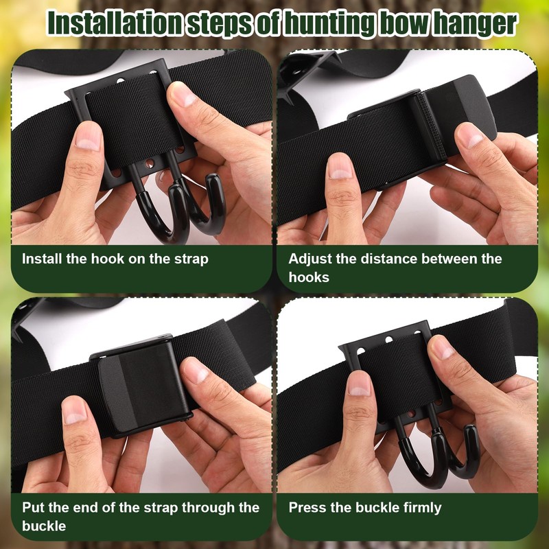• Product Advantage: Our tree stand equipment adopts self-locking buckle design, which is easy to install, and can also quickly and easily adjust the position of hooks, which is very convenient. And the tree equipment hanger will not damage the tree.