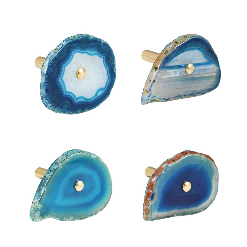 4 Pcs Unique Agate Blue Coat Hooks - Wall Mounted Decorative Hooks with Brass Finish - Holds Hats, Bags, Curtains