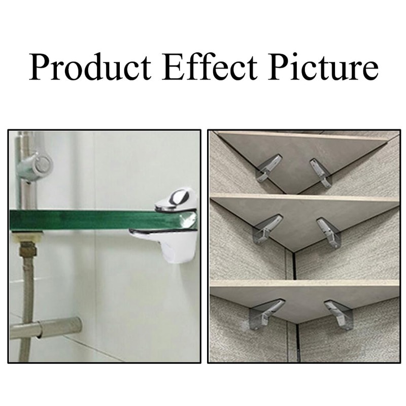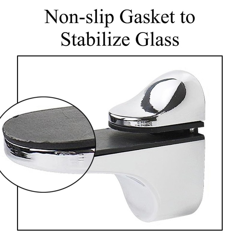 【Sturdy and Rugged 】The fixed clip is made of zinc alloy and treated with electroplating process, which is very sturdy and wear-resistant. This wall mount glass shelf bracket can minimize wear and tear and avoid scratches when combined with glass or wood panels. At the same time, the bracket is not easy to break when dropped on the ground, and has a long service life.