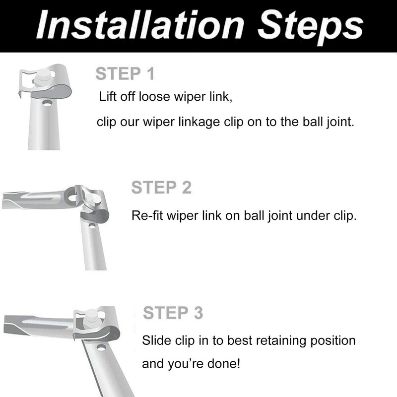 - Function - Wiper linkage motor repair clip kit suitable for most common wiper linkages. A easy way to fix the problem that wiper link keep popping off, movement erratic, not working
