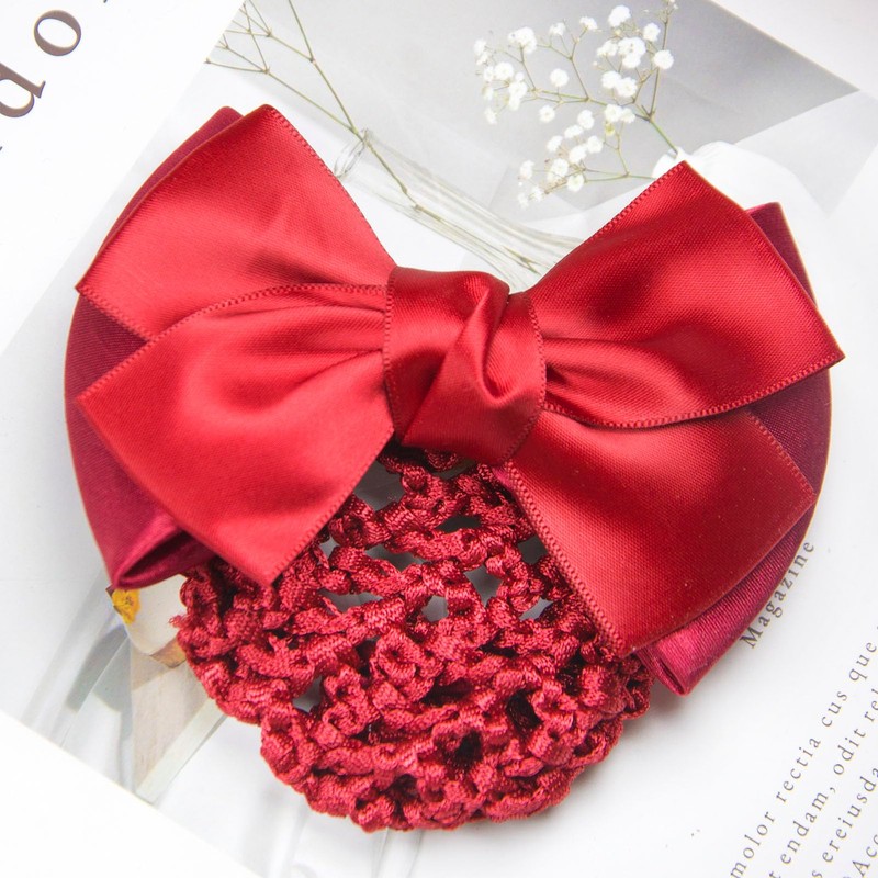 4 Pcs Women Hair Snood Net Bowknot, Red Hair Clip Bun Cover Ribbon for Lady, Dancing, Work and Daily Use