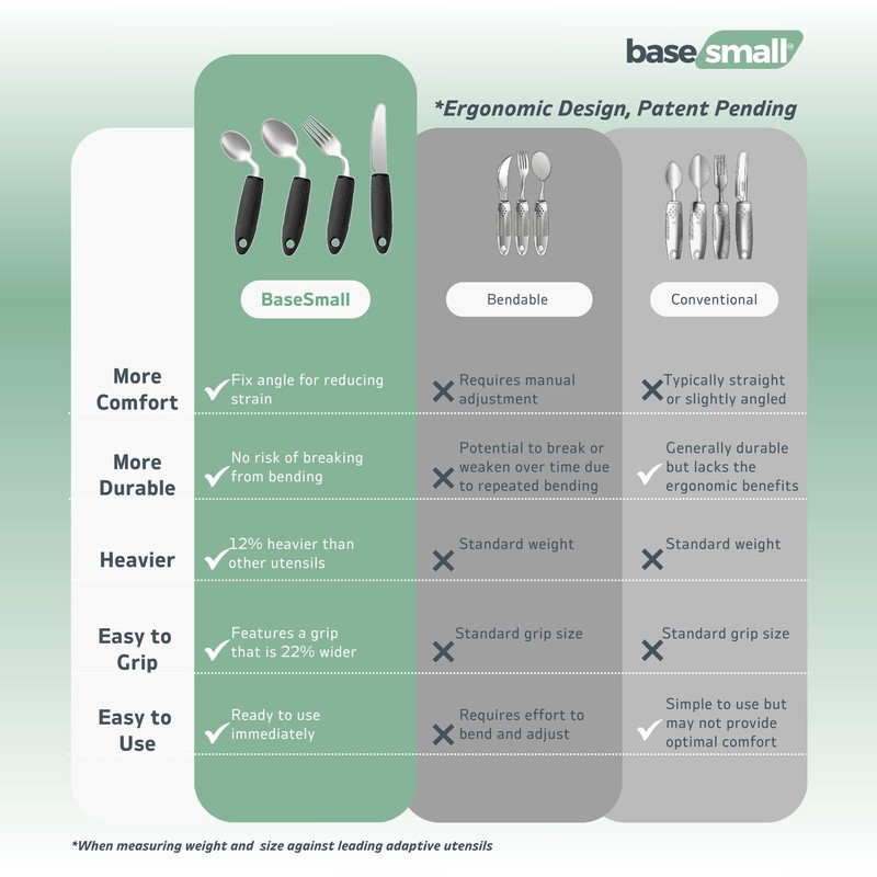 - VERSATILE ADAPTIVE CUTLERY: Suitable for various conditions including Parkinson's, arthritis, hand tremors, and limited dexterity. Enhances independence and dignity during meals.