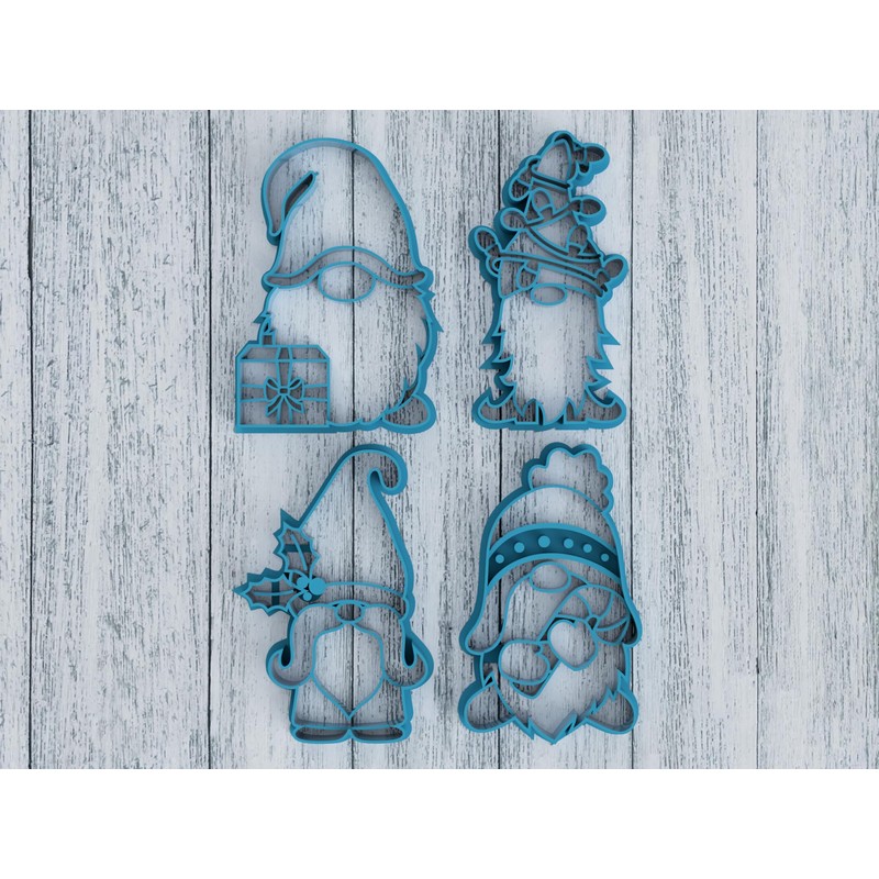 4 Piece Christmas Garden Gnome Cookie Cutter Set - Includes Gnomes with Lights, Gift, Holly and Candy Cane (4 Inch)