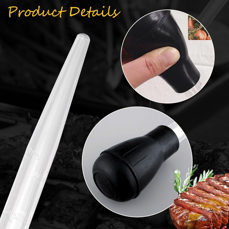 2. The drip tube is made of TPR and PS materials, which are safe and durable, easy to disassemble and clean, suitable for use in the kitchen and when barbecuing outdoors and ideal for applying fat and spices.
