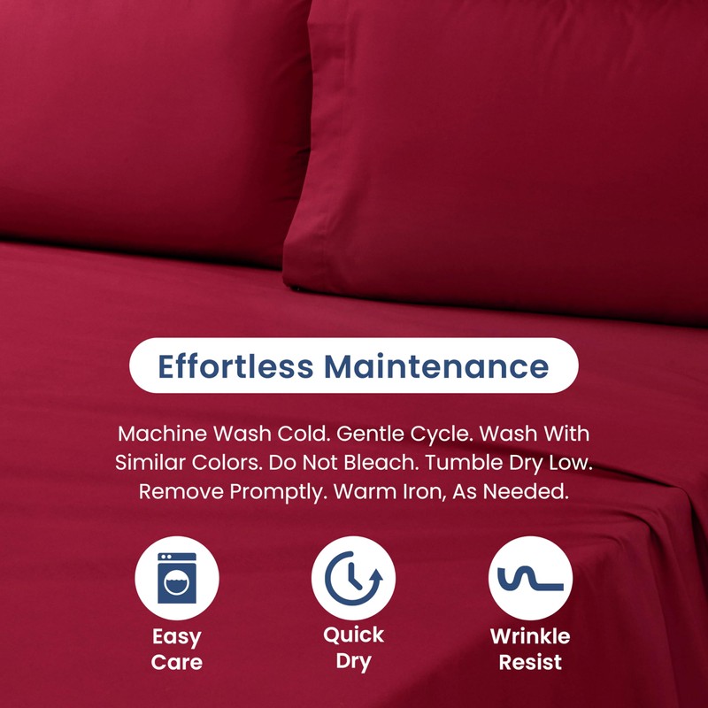 4 Piece King Size Bed Sheets Set | King Size Bed Sheets – Light Weight, Soft Breathable Sheets | Brushed Cotton Rich Blend | Secure-Fit, Wrinkle Resistant, Durable, Easy Care Bed Sheets | Red
