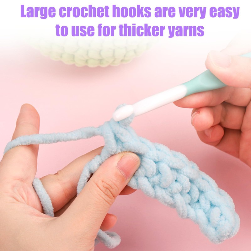 - Ergonomic soft handle: thick crochet hook adopts an ergonomic curved handle design designed for prolonged use, which effectively reduces hand fatigue and stress, crochet hook set allows you to knit for a long time without discomfort or cramps, maintains a comfortable grip and avoids tightness or discomfort in the hand, which can affect the creative experience.