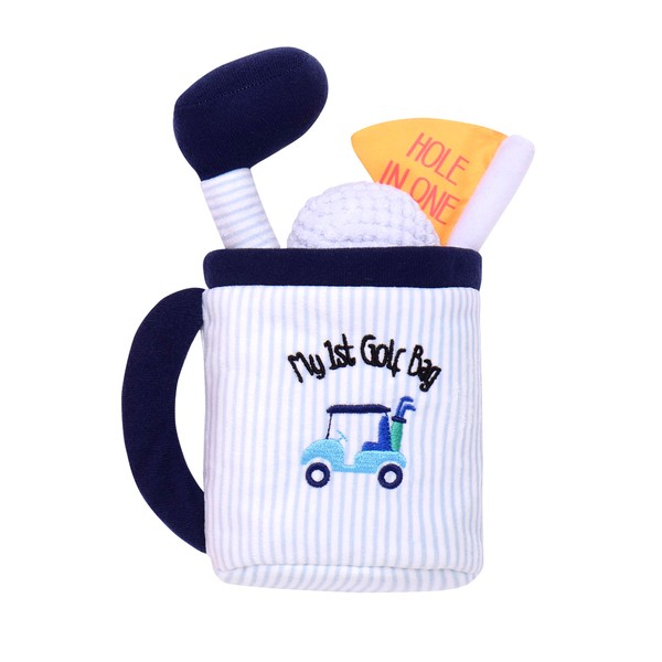 4 Piece Plush My First Golf Play Set with Sensory Toys for Baby, Blue Stripe, 9 inch