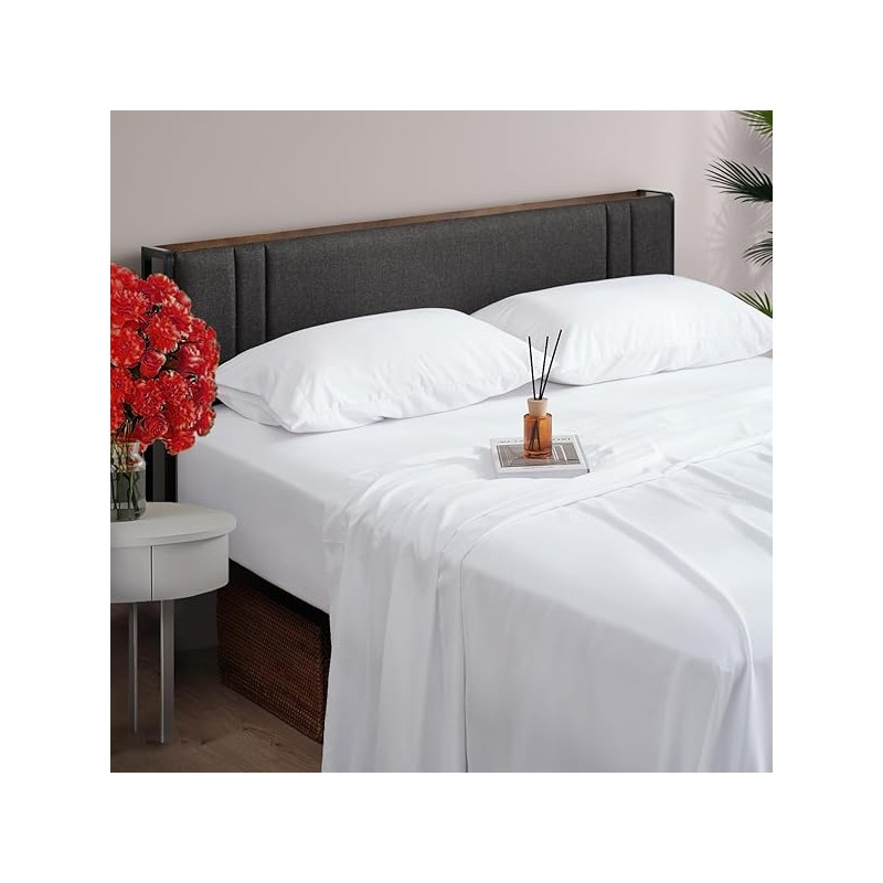 4 Piece Queen Size Bed Set, Upgraded Cooling Deep Pocket Comfy Breathable Hotel Luxury Bedding, Extra Soft & Wrinkle Free Sheets Cover, Queen Sheets up to 16 inch, White