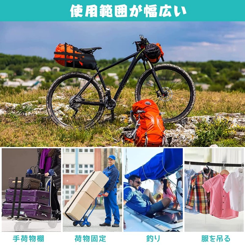 - 【MULTIFUNCTIONAL USES AND PRACTICAL】Adjustable cargo elastic straps can meet your different needs. Not only can it be used to secure your luggage on your bicycle, motorcycle, or car, but it also has a variety of convenient uses such as moving boxes, household use, camping and drying ropes. Life is easier and easy! Versatile and convenient cargo elastic straps can be used for different occasions