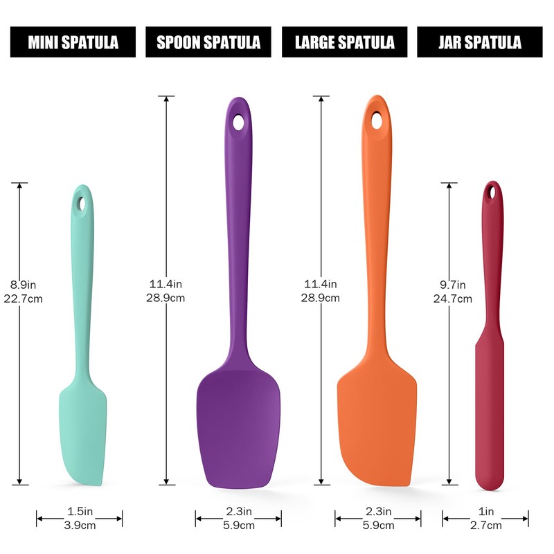 - [Why is the silicone spatula set so versatile?] The Doosu silicon spatula set meets all kitchen needs, featuring a spoon spatula for mixing and scooping, a large spatula for folding and spreading, a mini spatula for small containers, and a jar spatula for scraping jars clean. Each piece is heat-resistant and gentle on non-stick surfaces, ensuring durability without damaging cookware. This set enhances kitchen efficiency, making it ideal for any cooking or baking task.
