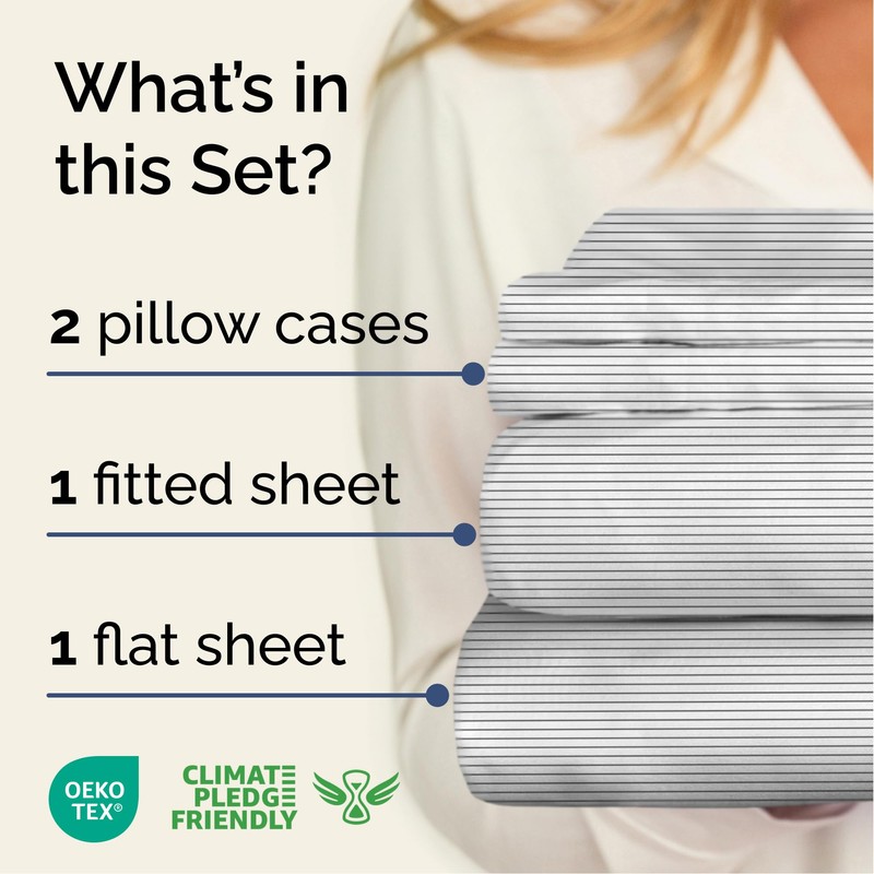 4 Piece Striped Sheets for Full Size Bed – Luxury Flat Sheet 81 x 96, Fitted Sheet 54 x 75 and 2 Pillowcases 20 x 30 – Deep Pocket, Ultra-Soft, Black and White Sheets – Oeko-TEX Stripe Sheet Set