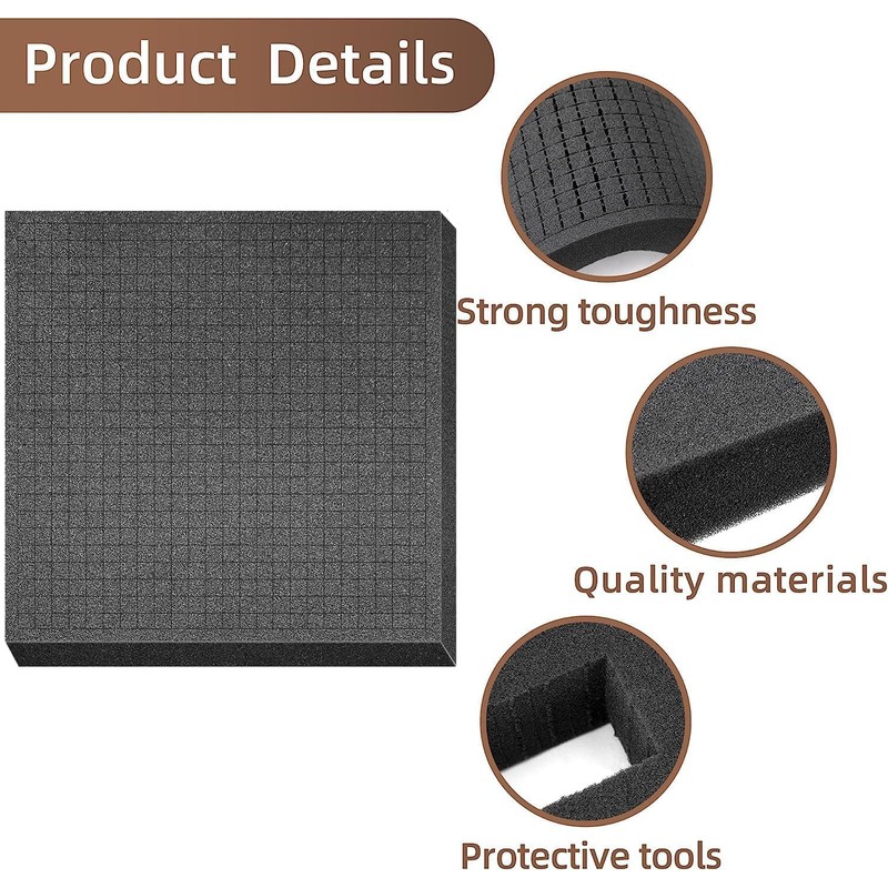 - Pre-perforated grid foam: you will receive 4 pieces 30 x 30 x 5 cm, 5 cm thick foam with pre-cut square grids. Easy to work with without tools. A pre-made additional grid on the surface of the toolbox. You can design the pick and plug foam insert according to the desired size and shape, you can also cut it according to your needs.