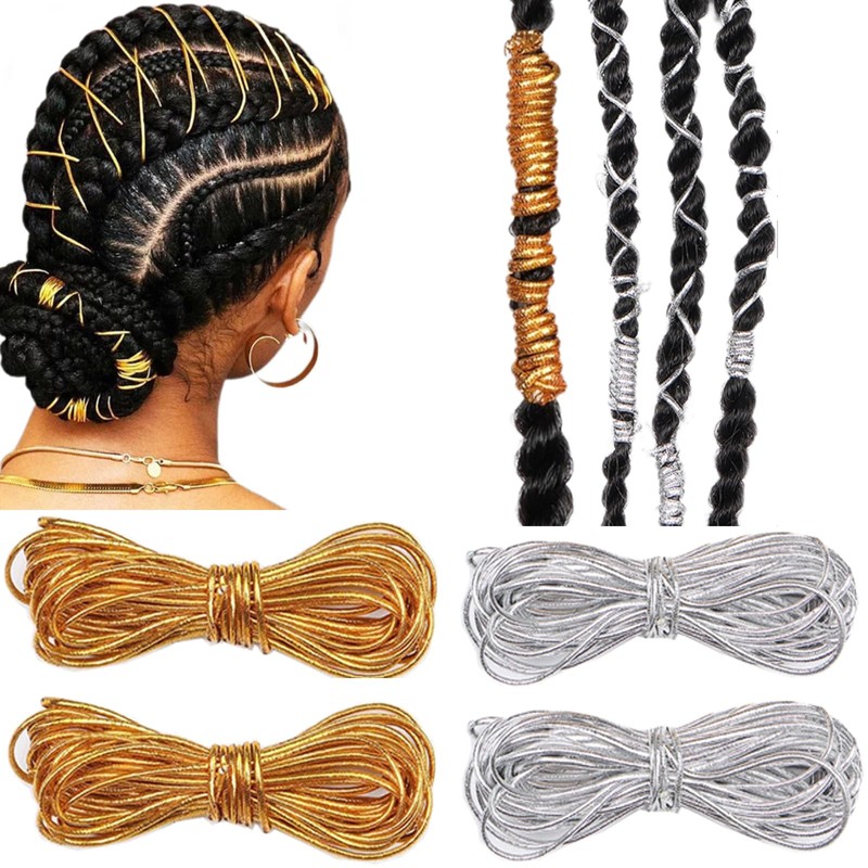 4 Pieces 5M Dreadlock Braids Hair Accessories Braiding Hair Deco Styling Braid Braided Elastic Cord Ornament Hanging Gift Wrapping Decorating (Gold Silver)