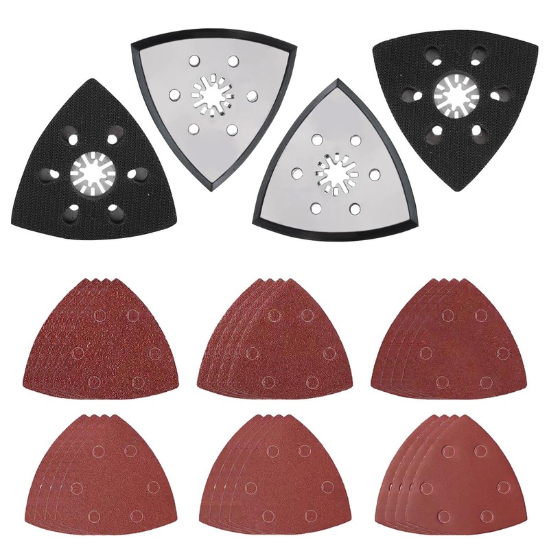 The pre-punched triangular sanding plate with six holes makes it easier to catch sawdust and provides a clearer and cleaner sanding surface. This multifunctional tool is suitable for power tools, pneumatic tools, grinders and more. It is perfect for sanding wood, metal, hard plastic, plaster and other materials and is widely used in a variety of grinding and polishing projects.