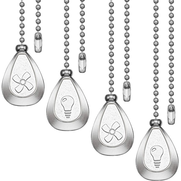 - Easy to use: there are 2 patterns among the 4 pieces ceiling chain extenders, 2 are designed with bulb pattern, 2 are with fan pattern, easy to identify by different patterns to know which one is the right switch for light or fan
