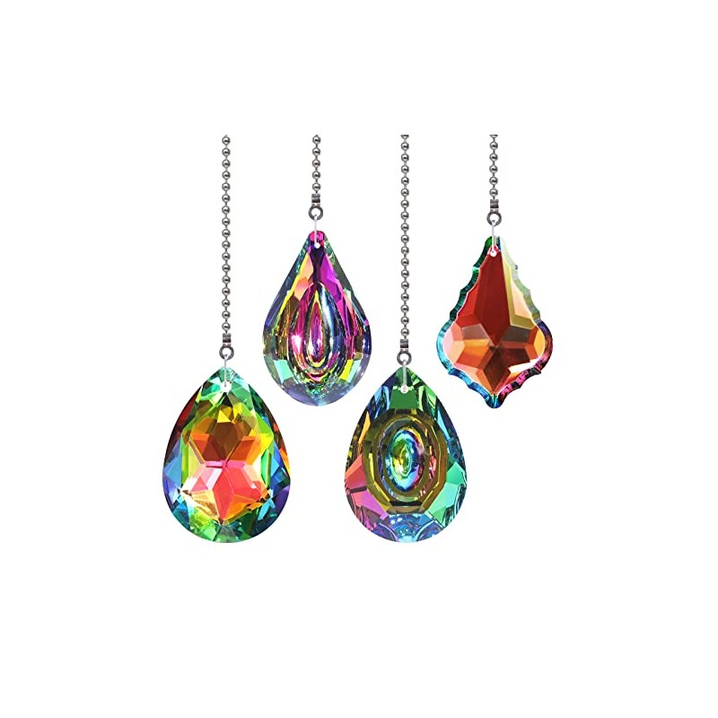 4 Pieces Crystal Ceiling Fan Pull Chain Rainbow Maker Pull Chain Extension wi...